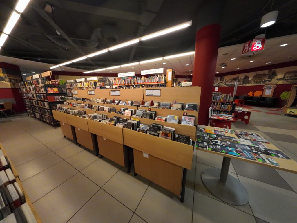 開館時間は月曜日から土曜日まで9時から21時までとポーランドの図書館としては長い。土曜日も開館している。開館時間は商業施設側との取り決めとのことである。そのためスタッフの勤務はシフト制になっている。商業施設は日曜日は閉店している。これは法律による規制である。当然,この図書館もそうだが,多くのポーランドの図書館(商業施設も)が日曜日に閉館するのは,その背景としてカトリックの価値観が関係しているのではとのことだった。日曜日は安息日であり,休みをとるわけである。以前,大学にしっかりした図書館がなかった時代に,分館のひとつが日曜日に短時間だけ開いていたが,今では大学図書館も整備され,そうした分館はなくなった。図書館職員は17名である。17名のうち,LIS(図書館情報学)を大学で学んだのは7名で,10名は学んでいない。但し,ほとんどがライブラリアンとしての雇用である。分館では,LISの知識よりも,コミュニケーション能力や,利用者の知的好奇心を刺激する力,イベントの企画力,などが重要になるとのことだった。このあたりは他の図書館で聞いた話とも共通する。ポーランドの図書館員の中には,職員の専門性に関する基準緩和を,前向きに捉えている職員も多い。目録のようなLISの知識が必要になる業務について尋ねたところ,分館での作成は行わず,本部で一括して作成しているという。人材育成については,OJTでステップバイステップに進めることが中心である。それに加えて,テーマごとの研修プログラムがメインライブラリーで開催されており,図書館員は必要に応じてそれに参加しているという。