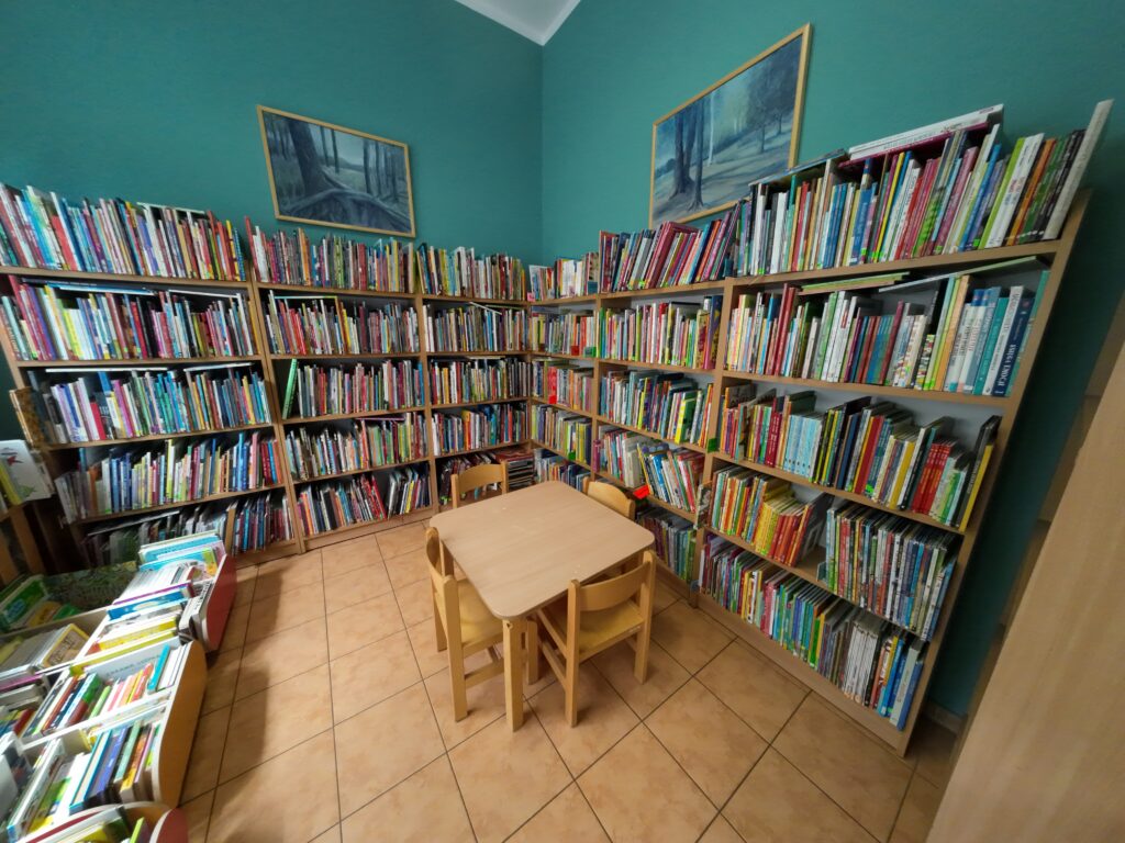 ワルシャワから東に約30キロのところに,ミンスク・マゾビエツキという町がある。ベラルーシの首都もミンスクだが,そことは別である。ここはマゾフシェ県の一つで,人口約4万人のグミナ(基礎自治体)である。ミンスク郡には13のグミナがあるが,ミンスク・マゾビエツキは最も人口が多く,郡の中心地である。図書館はミンスク・マゾビエツキ駅から歩いて15分ほどのところにある5。分館が一つある。ワルシャワのような集合住宅の中でなく,独立した建物となっている。外の入口脇には「ブックマート」と呼ばれる機械が置かれており,予約資料の受け取りや返却が可能である。開いた図書の大きなオブジェもある。館内に入ると左手に大人向けの貸出室があり,文学書,一般書,オーディオブック,コミックなどが並んでいる。蔵書量はそれなりに多い。一度部屋を出て奥に進むと,児童向けの部屋がある。部屋の至るところに桜の造花が飾られている。これは以前日本文化のイベントを行った際に作られたものとのことである。また,ここに来て気づいたのだが,図書館内にパンダをモチーフにしたものが多く置かれている。そもそも図書館のロゴにもパンダが使われている。図書館員に尋ねたところ,「絶滅危惧種のパンダと,電子化によって存立の危機にある図書館は似ているから」とのことであった。児童室の蔵書は絵本のほか,読みものがレベル1から4に分けられている。レベル4はほぼYA向けの内容である。こうしたレベル分けは,他の児童向け図書館でも同様であった。子ども用のオーディオブックも充実している。奥にはお話会などができる部屋があり,テーブルやソファーも置かれている。また,児童向けの一般書が分類順に並んでいた。建物の1階(日本的には2階)には「閲覧室」がある。閲覧席は比較的多く,利用者が一人いてスマホで話をしていた。ここに図書が並んだ一画があったが,これらはこれまで講演会などで来館した作家の著作とのことだった。数が非常に多い。ガラス張りの小部屋も併設されている。イベントなどで活用しているとのことであった。2階には「教育図書館」(Biblioteka Pedagogiczna)があるが,今回は行っていない。