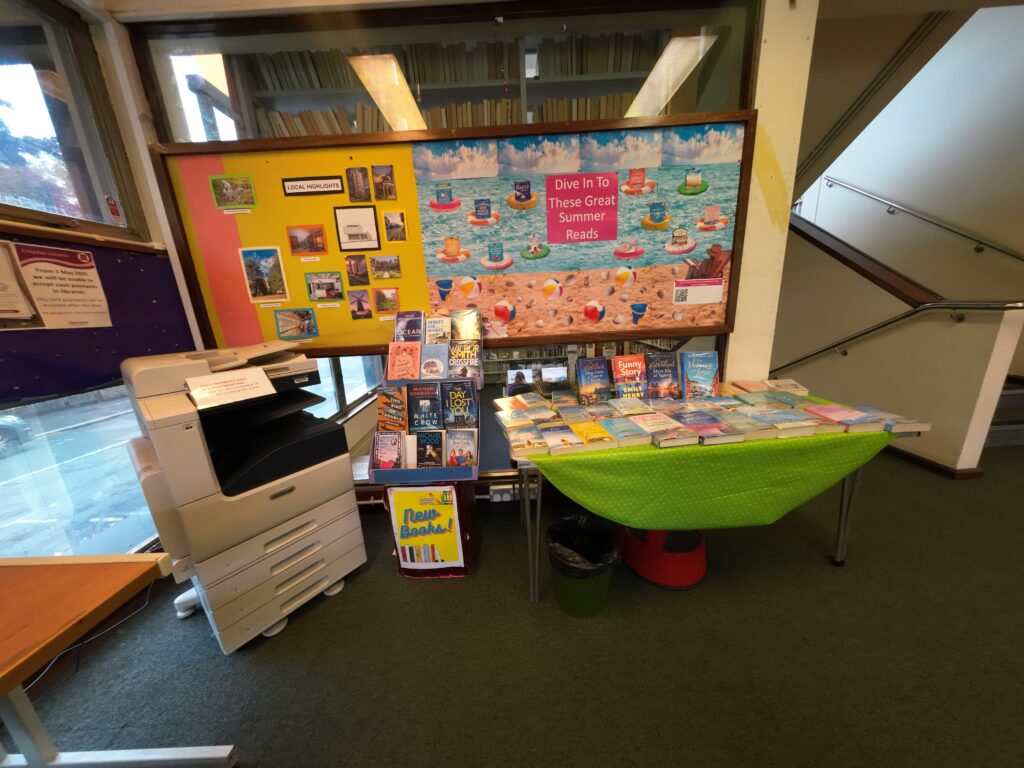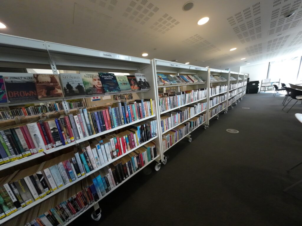 サットン区のカールシャルトンという地域にある36。サットン区の図書館は現在,23の自治体が加盟する図書館コンソーシアム(TLC)を主導する区である37。TLCについては別にまとめたい。市の公式ウェブによると,2022年,区民の43%が会員であり,70万点の貸出が行われ,デジタルリソースへのアクセスは66万点,図書館の来館者数は71万人であったという38。ちなみに区の人口はウィキペディアによれば約20万人である。ウェストクロフト・センター図書館は,区内8図書館のうちのひとつで,分館である。ザ・グローブという公園の横にあり周囲は住宅街である。建物はWestcroft Leisure Centreの中にあり,スポーツセンターとの複合施設である。入口入って右側に図書館がある。