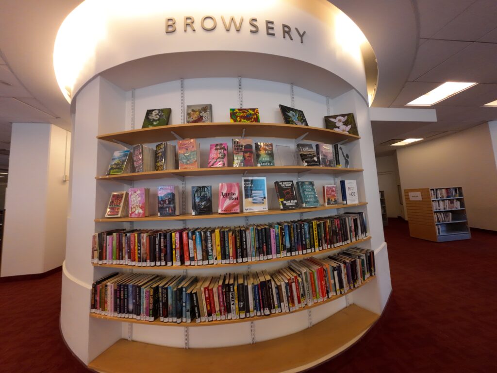 貸出について,電子書籍の利用が多い印象である。トロント市内の Indigo という書店でベストセラーとして売られていたタイトルをいくつかピックアップして所蔵状況を確認すると,例えば,『The stranger in room six』は紙版46(予約8),電子オーディオブック6(予約51),電子書籍15(予約13),『Girl on girl』は紙版35(予約184),電子オーディオブック23(予約163),電子書籍22(予約64),『One day, everyone will have always been against this』は紙版90(予約436),電子オーディオブック50(予約214),電子書籍45(予約332),大型活字本15(予約49)となっていた。タイトルによって差はあるが,電子資料の利用が進んでいることが分かる。また,最後のタイトルは各種媒体を合わせると200点あるように,それなりに購入していることも分かる。