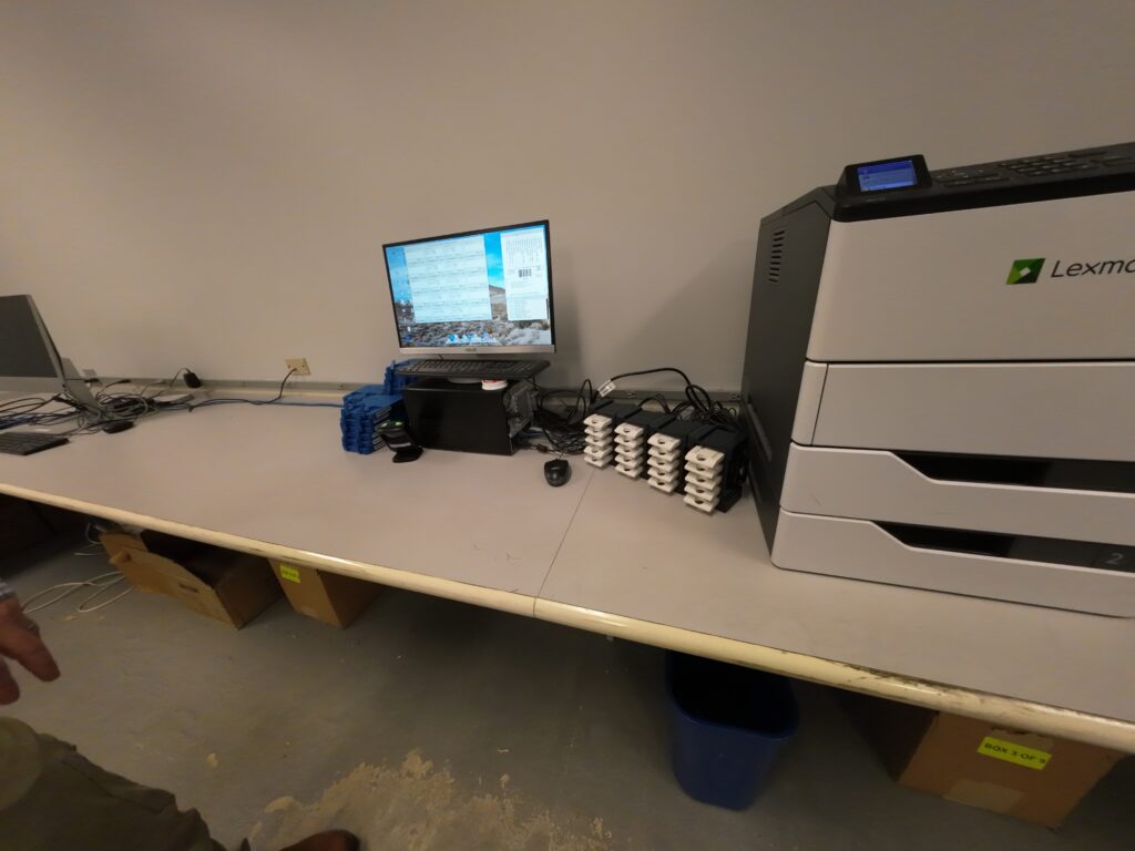 興味深かったのは,Victor Reader用のメモリ提供方法である。以前はメモリごとにタイトルを分けて提供していたが,2022年頃から,利用者ごとにオーダーメイドでタイトルをダウンロードして届ける方式に変更されたという。この方式は,要望による複製(DoD: Duplication-on-Demand)と呼ばれている。OLBPDでは,選書した録音図書をBARDからダウンロードし,メモリに書き込む。一度にメモリに入れる件数は,一応24点とされているが,柔軟に運用されている。おそらく24点はラベルで印刷できる最大点数と思われる。一連の作業も見せてもらったが,メモリの初期化,利用者番号に紐づいた録音図書の書き込み,メモリのカートリッジ用ラベルの印刷といった作業は,相当程度自動化されていた。公共図書館の電子書籍と異なり,ライセンス数の制約がない。そのため複製が可能であり,また,物理的な制約もないことから,予約待ちもない。そして,貸出期限も柔軟である。なお,BARDを運用するNLSは米国著作権法121条に基づき,著作物をDAISY形式の録音図書や点字などに媒体変換することが認められている。