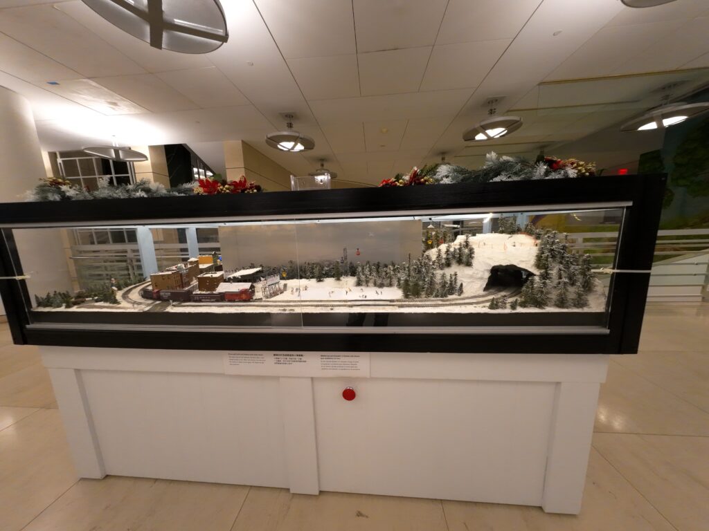 1階入口で目立っていたのが,クリスマスシーズンということもあって展示されていた「ハンティントン・ホリデー・トレイン」である。雪山の中を機関車が走る巨大なジオラマで,子どもたちは大喜びであった。児童室には資料だけでなく,レゴや遊具,汽車のジオラマなどがあり,読書以外にも楽しめる要素が数多くあった。
