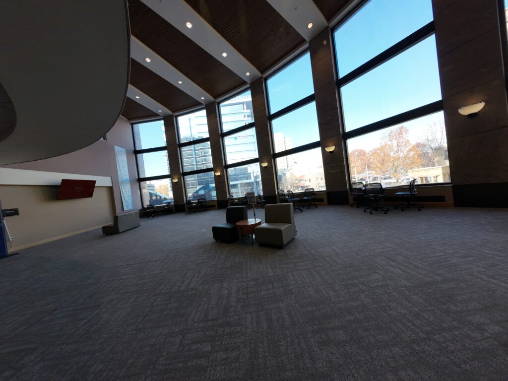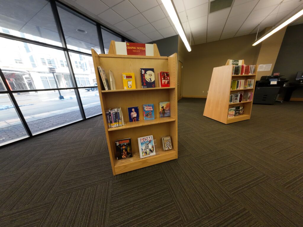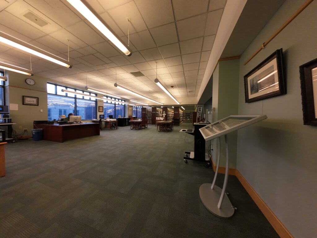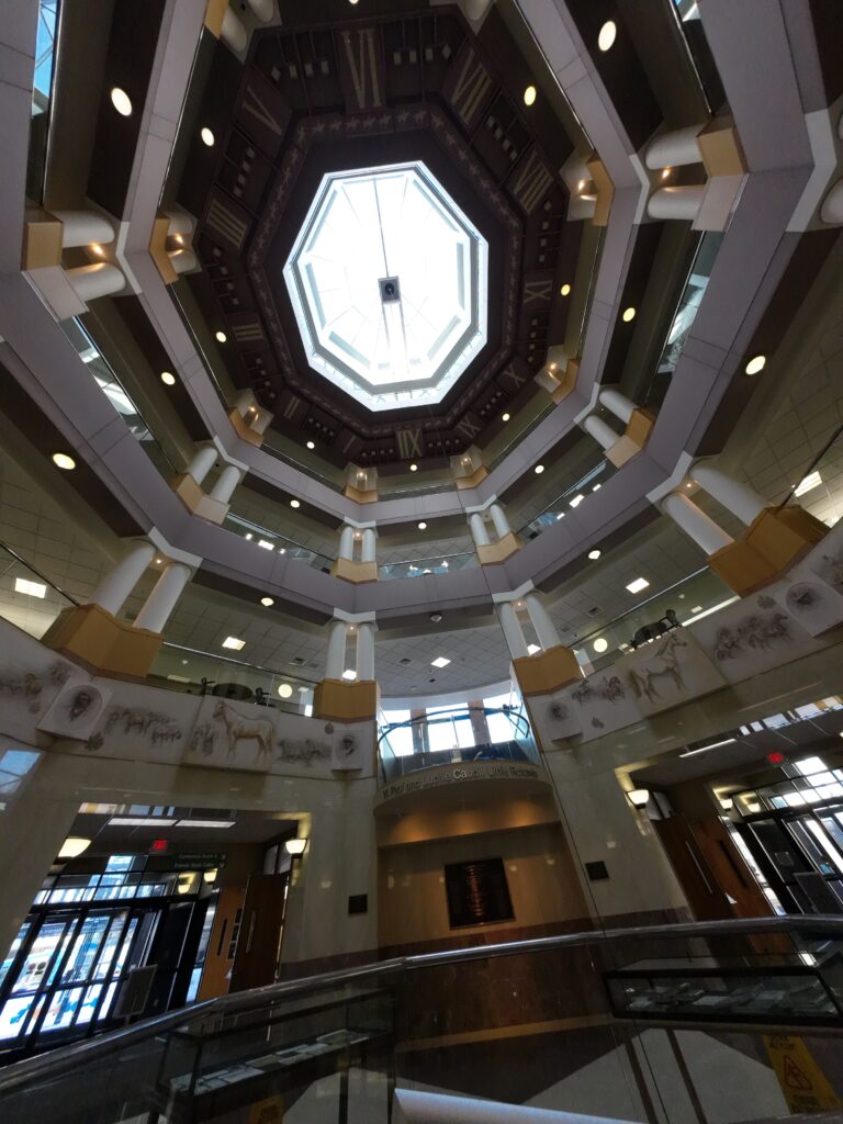 中央館はレキシントンの中心部にある。1989年に設置された。建物は5階建てである。入口を入ると円形のホールが広がっている。天井からは「フーコーの振り子」が吊るされている3。これは市民からの寄贈によるものである。また,世界最大とされる天井時計も設置されているが,利用者は気づくであろうか。ホールの周囲には展示ケースが置かれ,地域資料などが紹介されている。その中には,この地域の黒人コミュニティに関する資料を集めた「ブラウン・ホッカー・コレクション」もあった。そこでは,そのデジタルコレクションの紹介も行われていた。目につきにくい貴重なコレクションを,もっとも目立つ場所で紹介するという点は,よい工夫だと感じた。