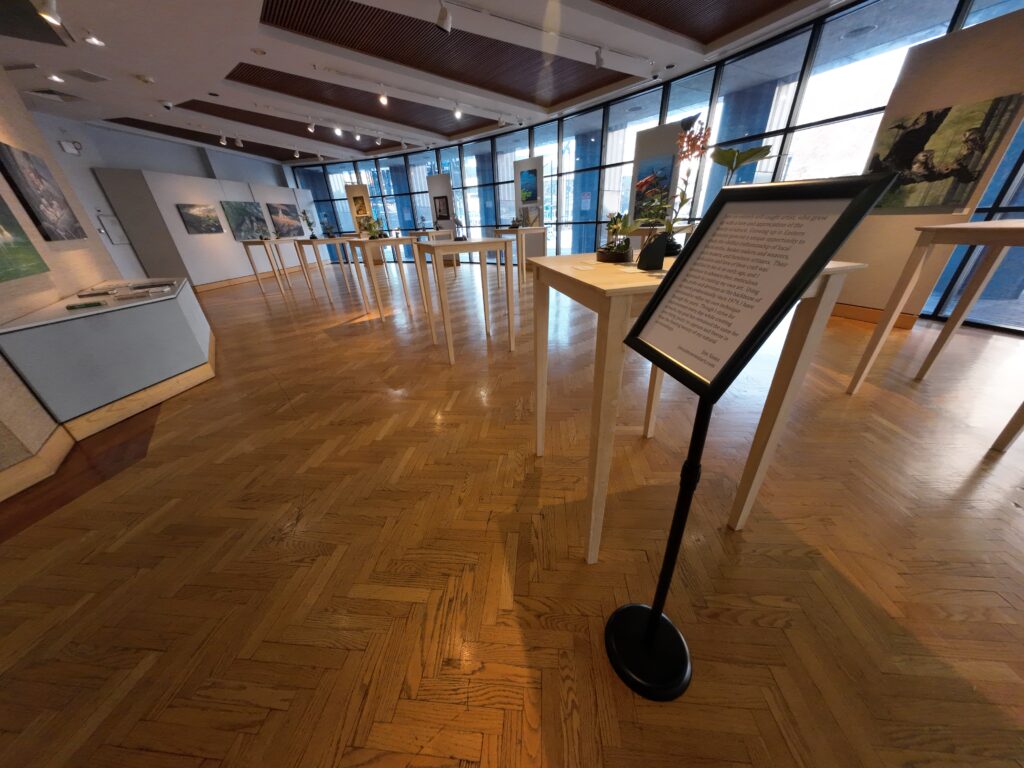 1階には,新刊を紹介するコーナー,展示用のギャラリー,シアターがある。新刊コーナーでは,フィクション,ノンフィクション,児童書,ティーン向け資料,グラフィックノベルなど,各分野の新しい資料のみが並べられていた。特に人気のある新刊を目立つ位置に置くことで,古い資料に埋もれることなく,効率よく利用されるよう配慮されている。シアター(William Stamps Farish Fund Theater)では,音楽,映画,演劇など多様なプログラムが開催されている4。ギャラリーでは地元アーティストの作品が展示されており,訪問時は「森の中へ:野生の生き物」という展示が行われていた。展示作品は販売されているため価格が書かれている。展示期間は6週間とのことであった。