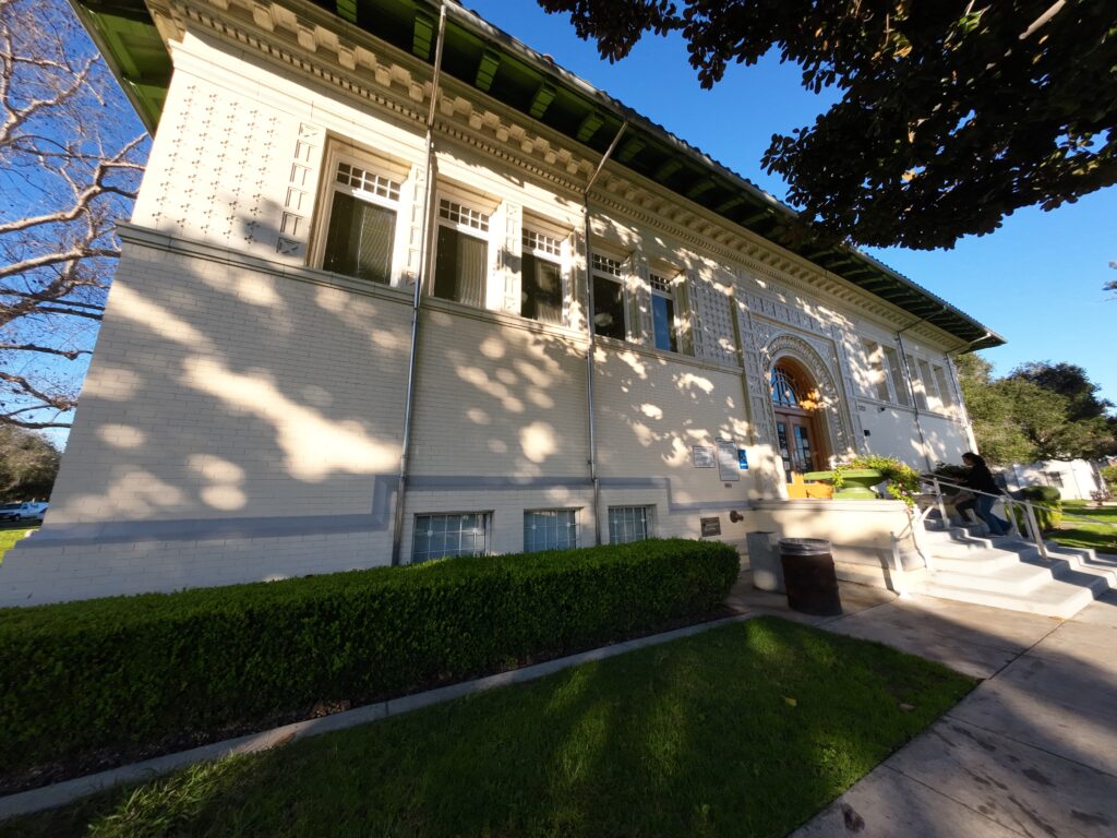 サウス・パサデナ市が設置している32。市はロサンゼルス市と西側で接している。この地域はアジア系住民が多い。2020年の国勢調査ではアジア系が34.4%を占め,39.6%の白人に次ぐ。図書館のある一画は緑に囲まれた広場で,公園のような雰囲気であった。とても気持ちのよい場所である。サウス・パサデナは「バック・トゥ・ザ・フューチャー」をはじめ,映画のロケ地としても知られている。