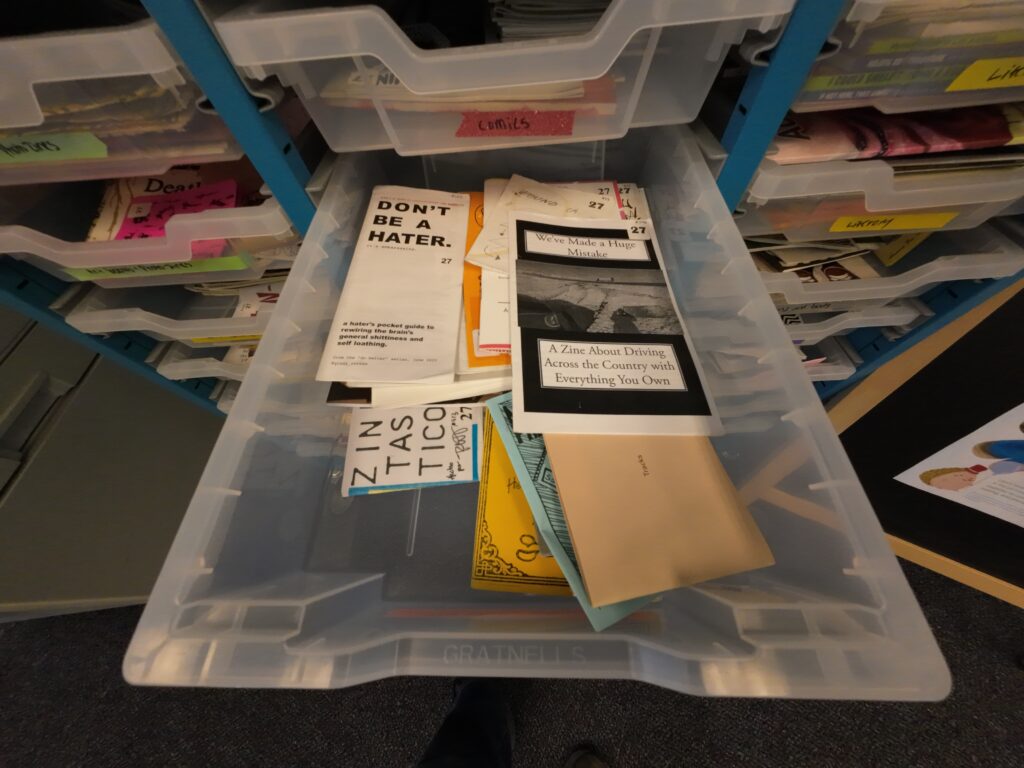 コレクションポリシーによると,Zineは自分で作る著作であり,社会的に疎外されているコミュニティや人々,一般的な出版手段にアクセスできない人たちがDIYで制作する媒体と位置づけられている。図書館では,そうした取組を支援するとされている52。Zineの所蔵を希望する市民は,状態の良いものを10部持参する。図書館側では選定基準に基づいて審査を行い受入の可否を決定するという。ウェブを通じて世界中に情報発信できる時代であるが,地域に確かな情報を残すことができる点で,一定の意義があるように感じられた。