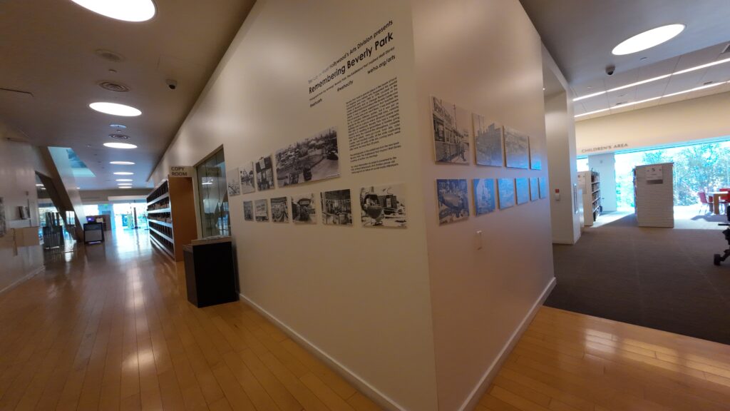図書館の白い壁面では,2階,3階で地域の過去の写真や絵画などを用いた展示が行われていた13。かつてこの地域に存在したという遊園地「リメンバリング・ビバリーパーク」の紹介,街の景観をテーマとした「Heart of WeHo」,ウェストハリウッドの歴史を紹介する「Historic WeHo」などである。これらはいずれも市の美術館と連携した企画であった。カウンティ立図書館であるが,地元の市と密接に協働している点が興味深い。