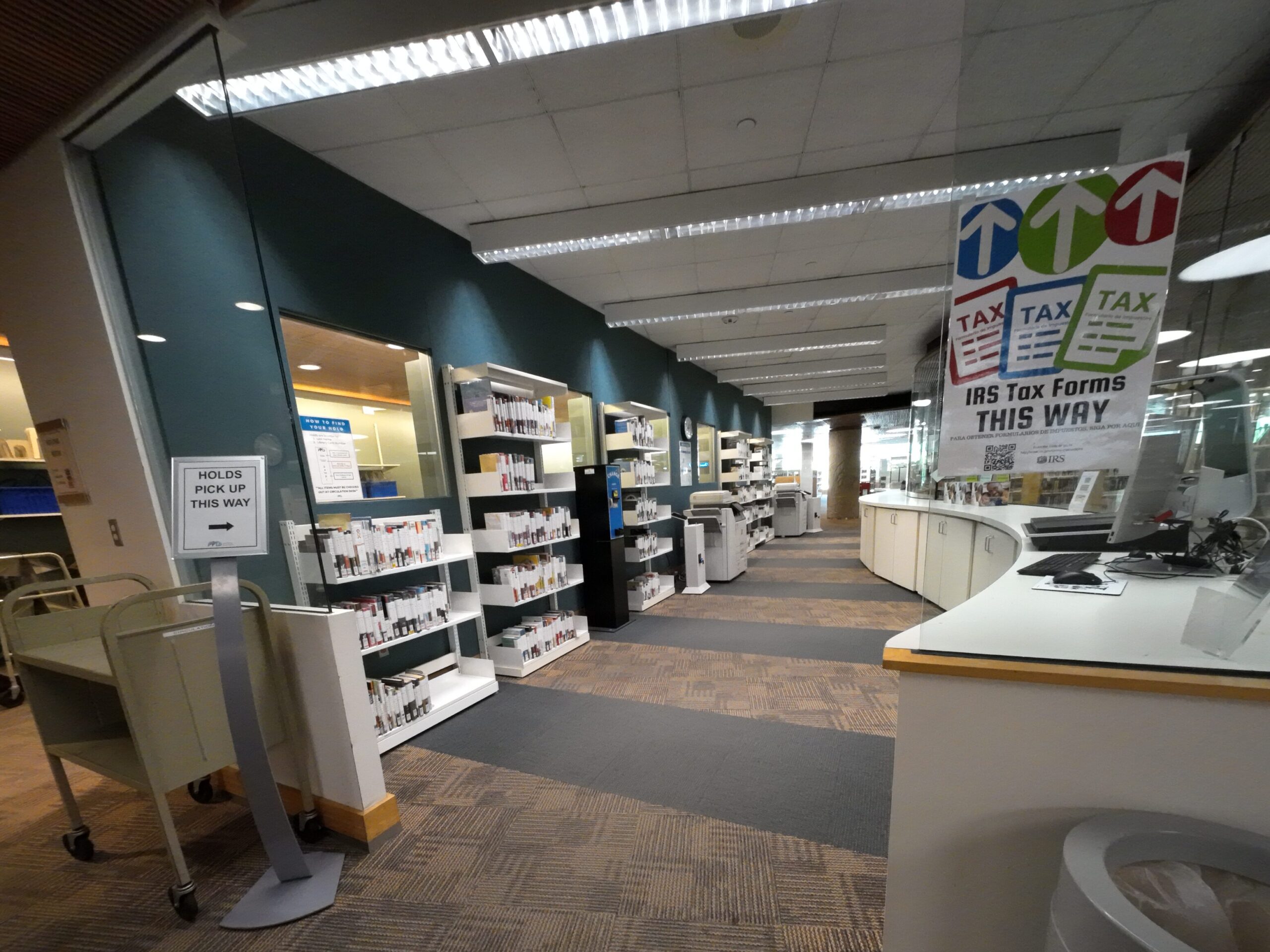 図書にはRFIDタグは貼付されていない。OPACはSirsiDynixを使用していた。電子書籍はOverDriveやHooplaを紹介していたが,ウェブページを確認した限りでは,Palace Projectは紹介されていなかった。全体として,電子書籍の貸出はそれほど多くない。