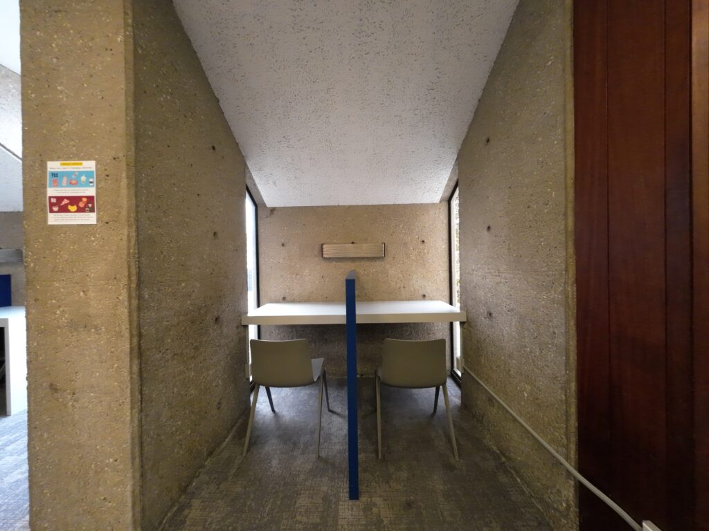 全体として,ブルータリズム建築の特徴をうまく活かしたリノベーションが行われていた。ゆったりとしたスペースが随所に設けられ,滞在型の公共図書館として,空間づくりに成功している印象を受けた。