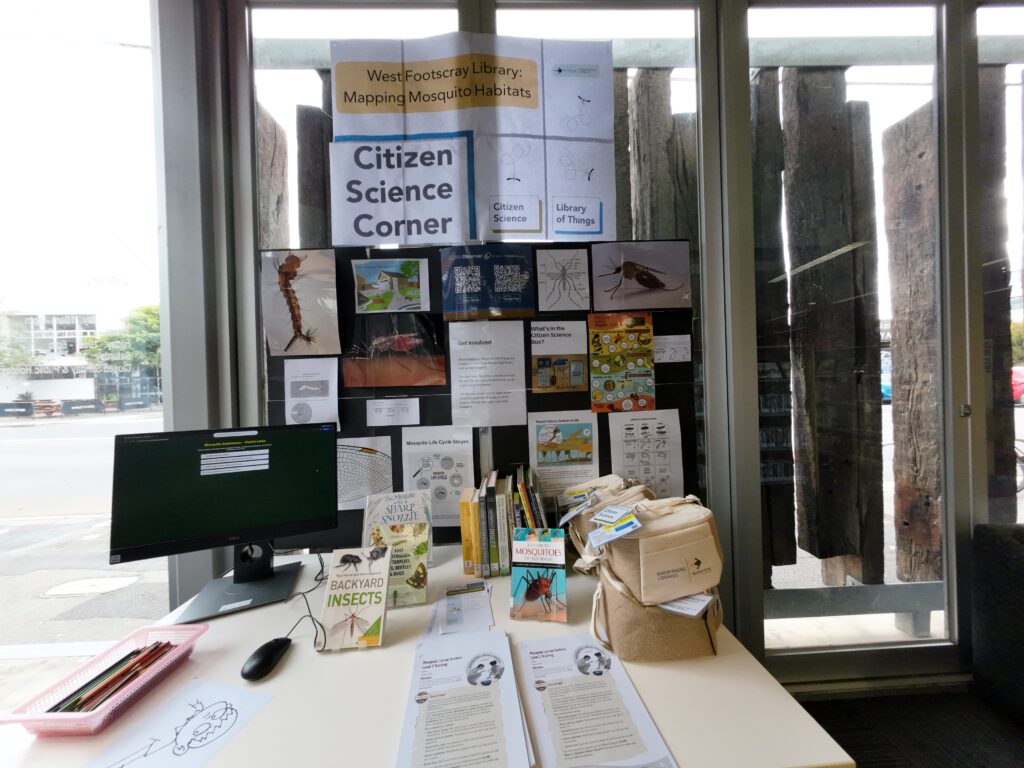 印象に残ったのは,シチズン・サイエンス・コーナーである。この図書館では Library of Things の一つとして,「蚊の生息地の地図作成」というキットを貸出している。これは蚊の幼虫などを観察するキットで,観察結果をアプリを通じて報告し,共有できる仕組みになっている34。シチズン・サイエンス・コーナーはこれに焦点を当てた企画で,蚊に関する図書の展示や,キットの使い方の解説が行われていた。科学への関心を高める取組の一環といえ,STEMの取組の中でもかなり本格的な内容であった。このキットは,北米で始まった SciStarter という市民科学プロジェクトの一環である。一般市民の科学への参加を促進することを目的とした取組である。世界中の図書館が参加しているが,日本からの参加はなかった!