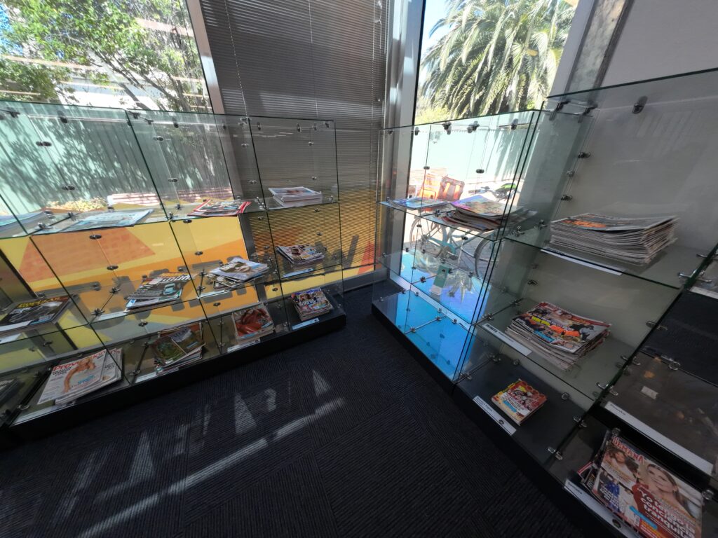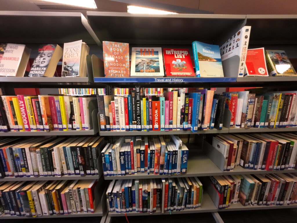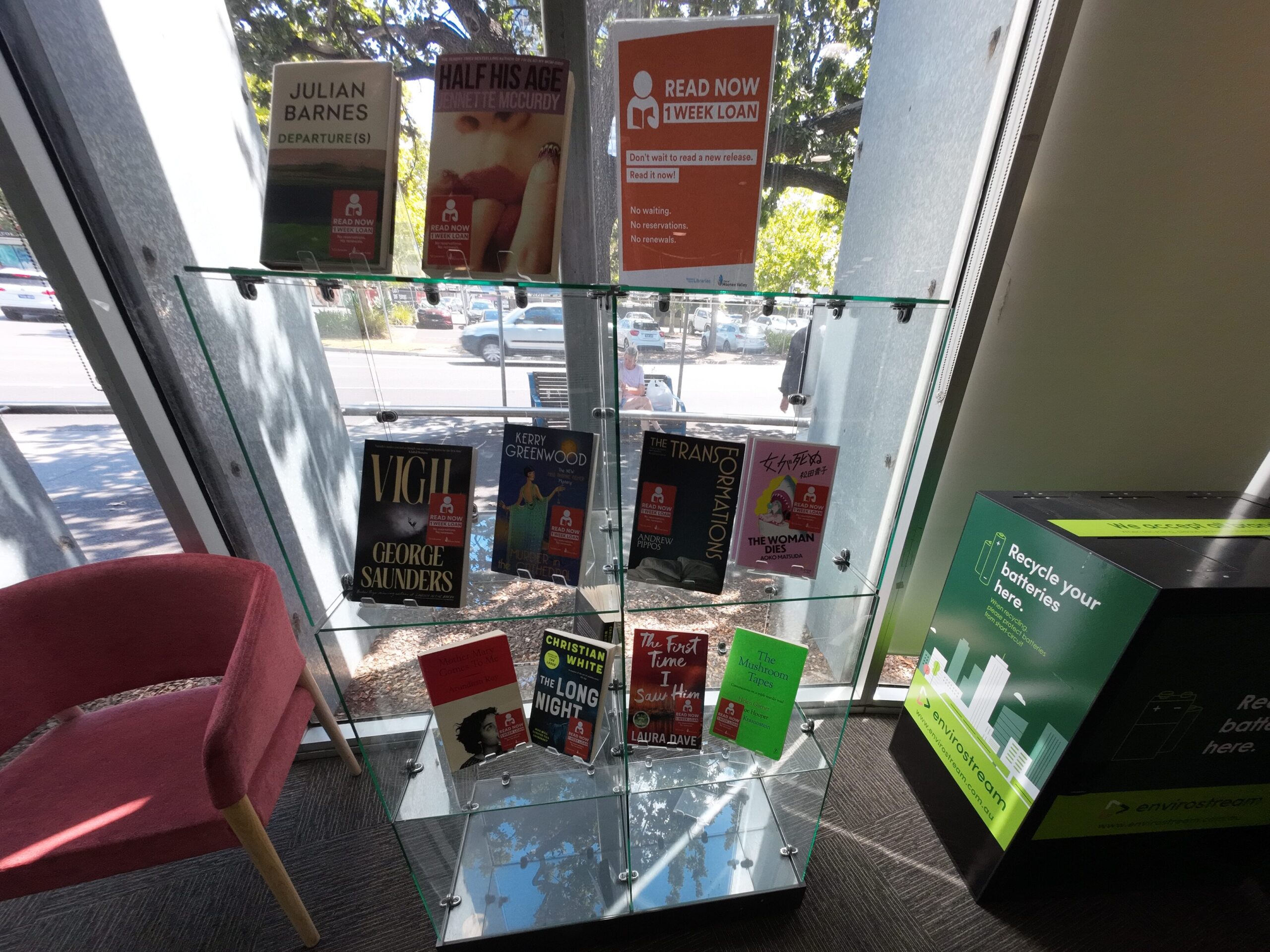 興味深い点として,排架方法が挙げられる。DDC順ではなく,テーマごとの排架であった。これまで見てきたオーストラリアの図書館の多くも同様であった。テーマとしては,社会,料理,健康とウェルネス,家庭菜園,科学と自然,言語と文学,娯楽,旅行,ビジネスとIT,芸術,歴史などである。各テーマの中ではDDC順に並んでいる。利用者にとって分かりやすい。