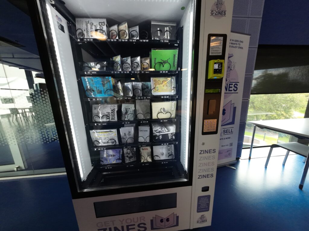 2階は,ノンフィクション,大活字本,オーディオブック,雑誌,DVD,グラフィックノベルがある。ノンフィクションは棚ごとにテーマ表示がされており分かりやすい。オーストラリアの先住民族文化に関するコーナーもあった。また,ガラス張りのディスカッションルームが4部屋設けられている。BookTok の特集が組まれており,近くにはZine の自動販売機が設置されていた。これはグレーター・ジーロング市のコミュニティ補助金によるものであり,図書館では Zine 製作のワークショップなどを開催している38。ロサンゼルスで見たものと比べて,かなりしっかりしたZineであった。